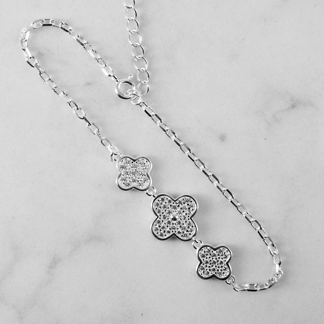PULSERA 3 TREBOLES CIRCONES 17CM